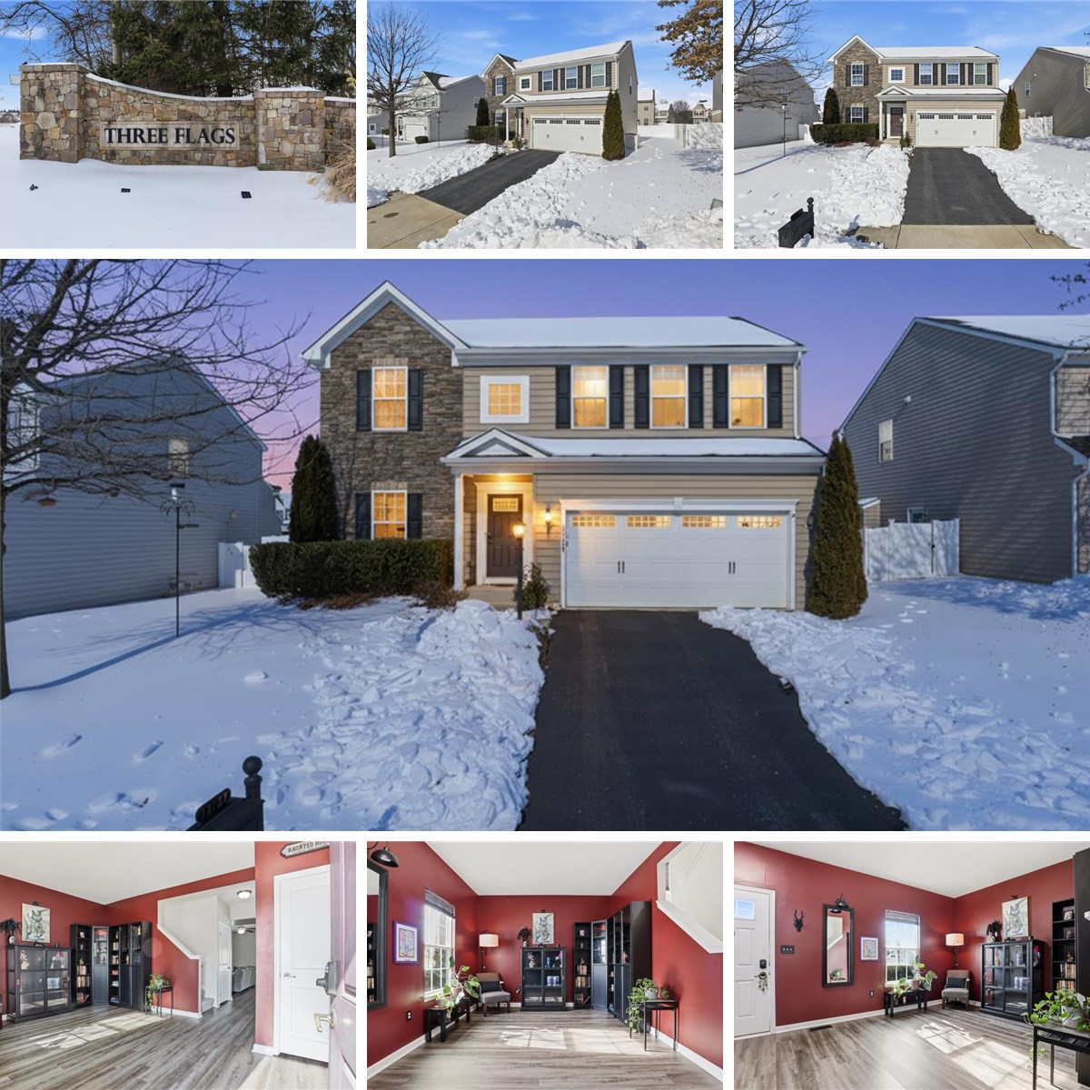 Beautifully maintained 4-bedroom, 2.5-bath Colonial in the desirable Three Flags subdivision, offering over 3,500 square feet of thoughtfully designed living space. Built in 2014, this home blends modern comfort with timeless style and features new flooring throughout. The open and inviting main level flows seamlessly, making it ideal for everyday living and entertaining. The eat-in kitchen features upgraded cabinets, granite countertops, a center island, and new refrigerator and microwave, with plenty of space to gather. Upstairs, the primary suite provides a private retreat with a spacious walk-in closet and ample storage. The mostly finished basement offers an open-concept layout with flexibility for a future 5th bedroom and full bathroom, perfect for guests, a home office, or recreation space. Enjoy access to the community center and pool, and appreciate the home’s convenient location just outside of town, close to Shenandoah National Park, hospital, shopping, and everyday essentials - offering both comfort and convenience.